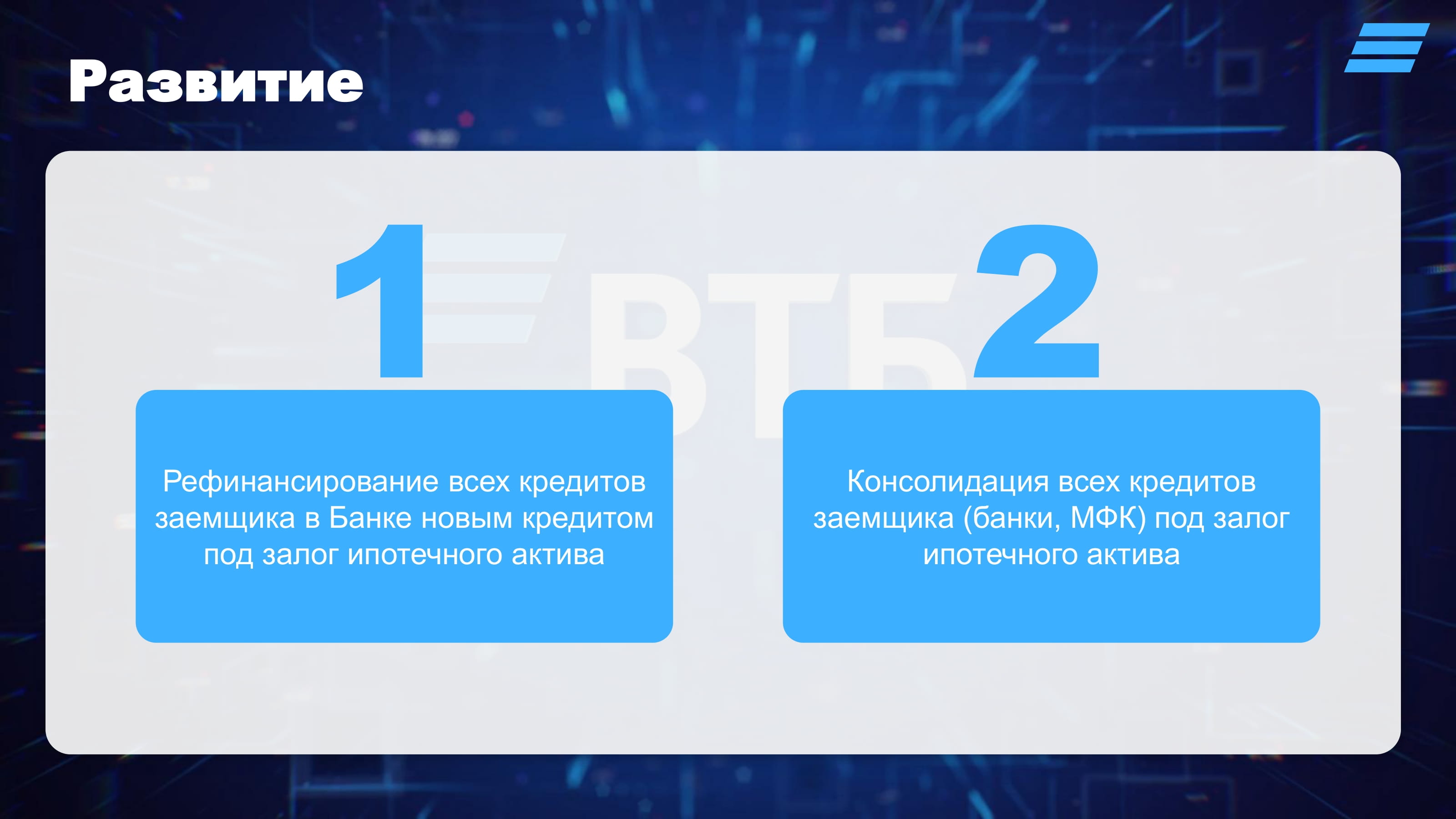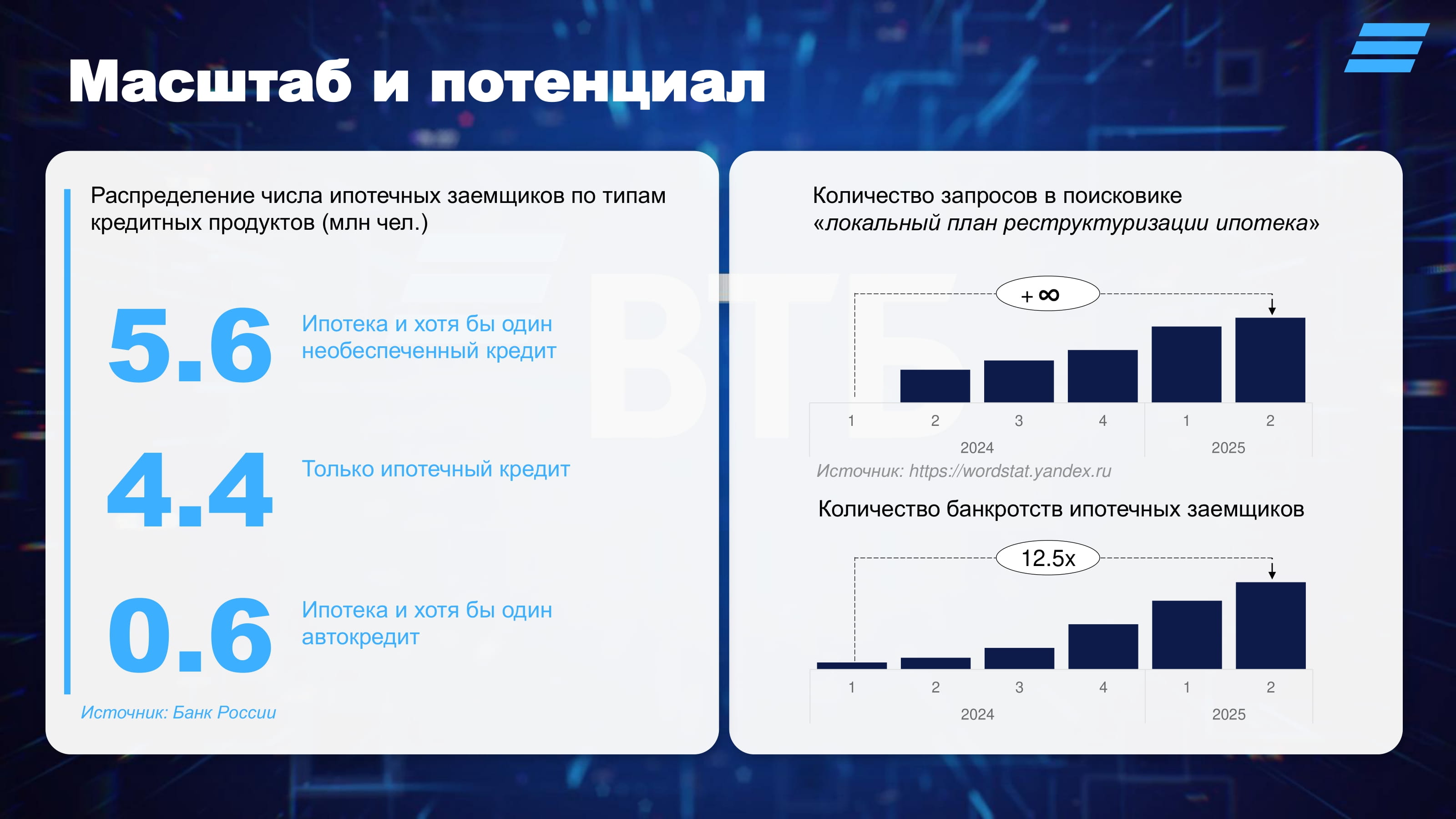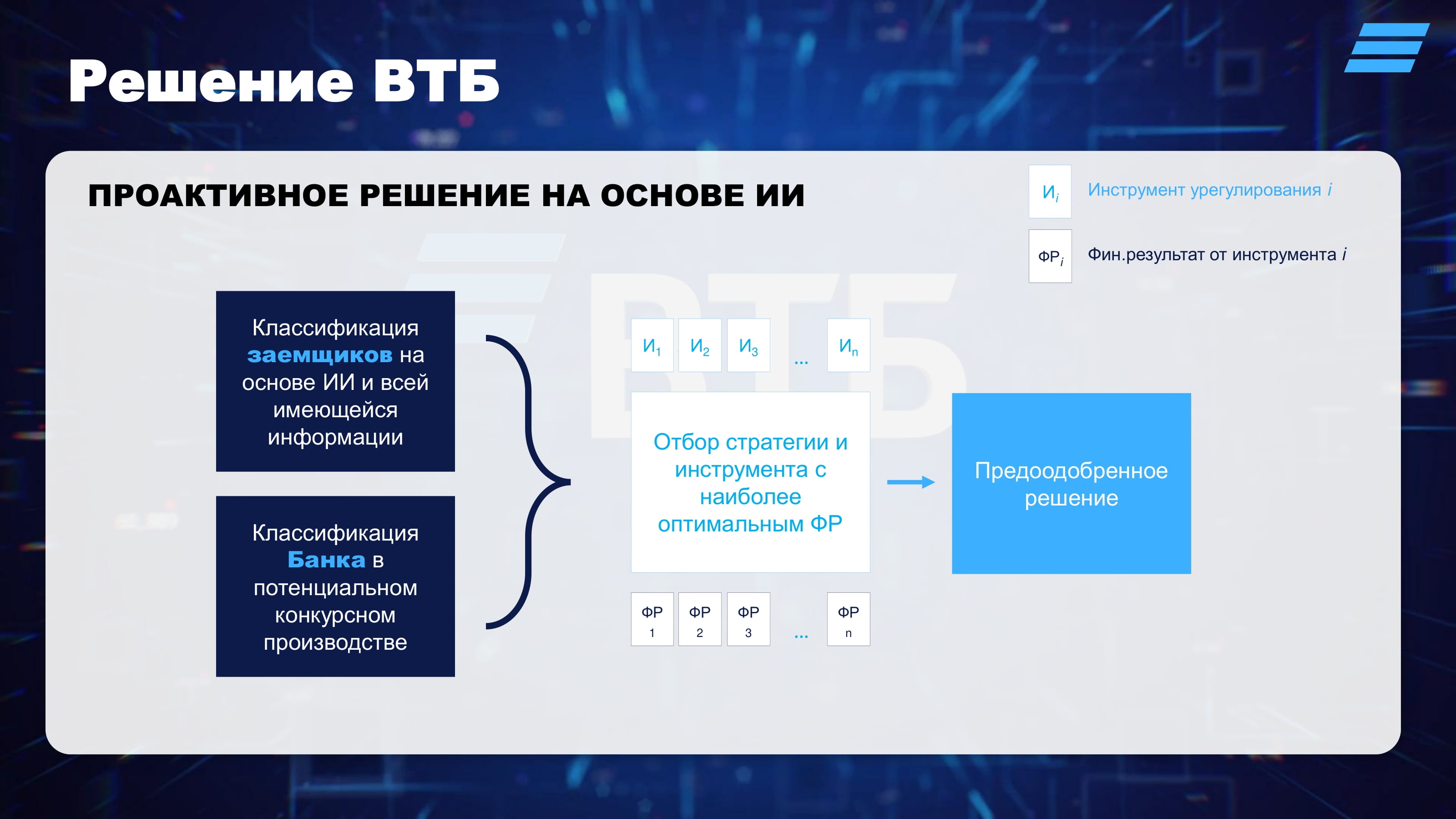 ВТБ разработал процесс, в рамках которого проактивно на основе ИИ выявляет заемщиков-ипотечников с высокой вероятностью банкротства, и, в зависимости от роли Банка в потенциальной процедуре банкротства, проактивно предлагает заемщикам инструменты урегулирования, наиболее подходящие заемщику и позволяющие ему справится с трудностями.