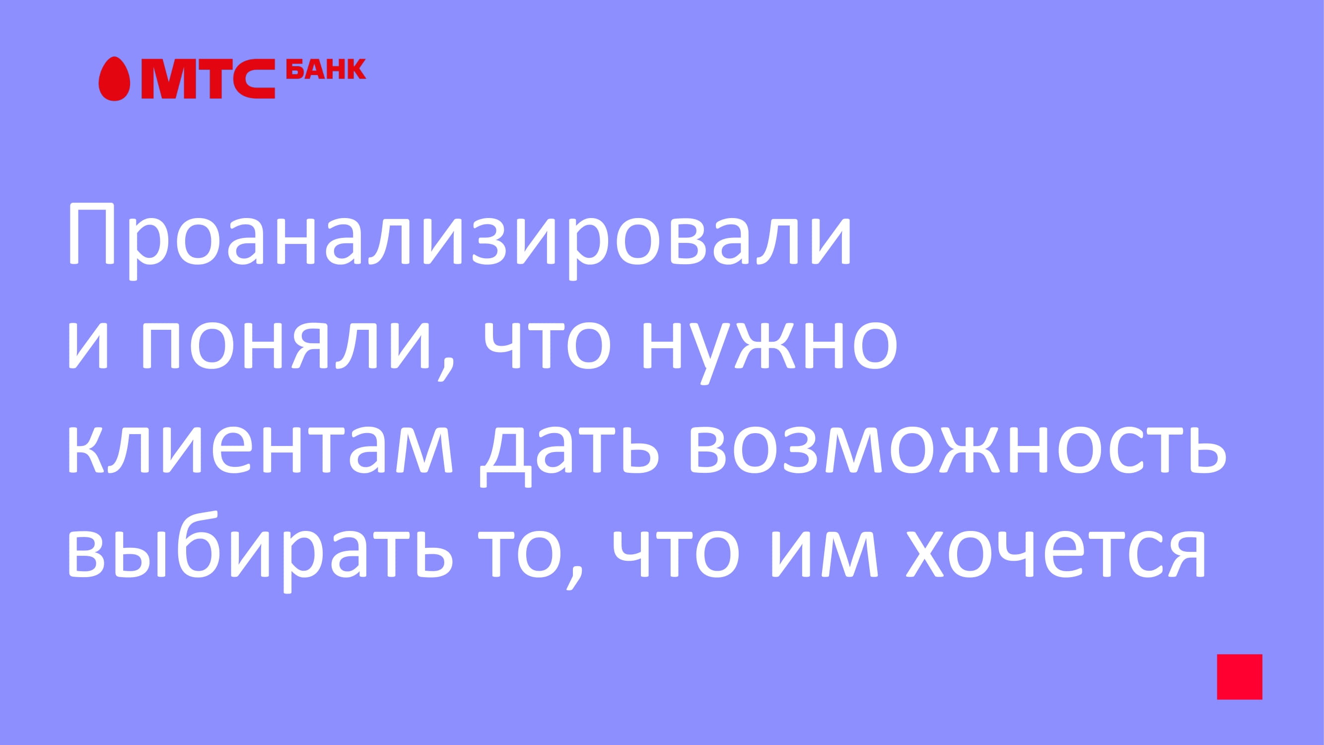 Ключевая идея — свобода выбора. Каждый клиент сам определяет, какой пакет активировать, в пару кликов в приложении «МТС Деньги».