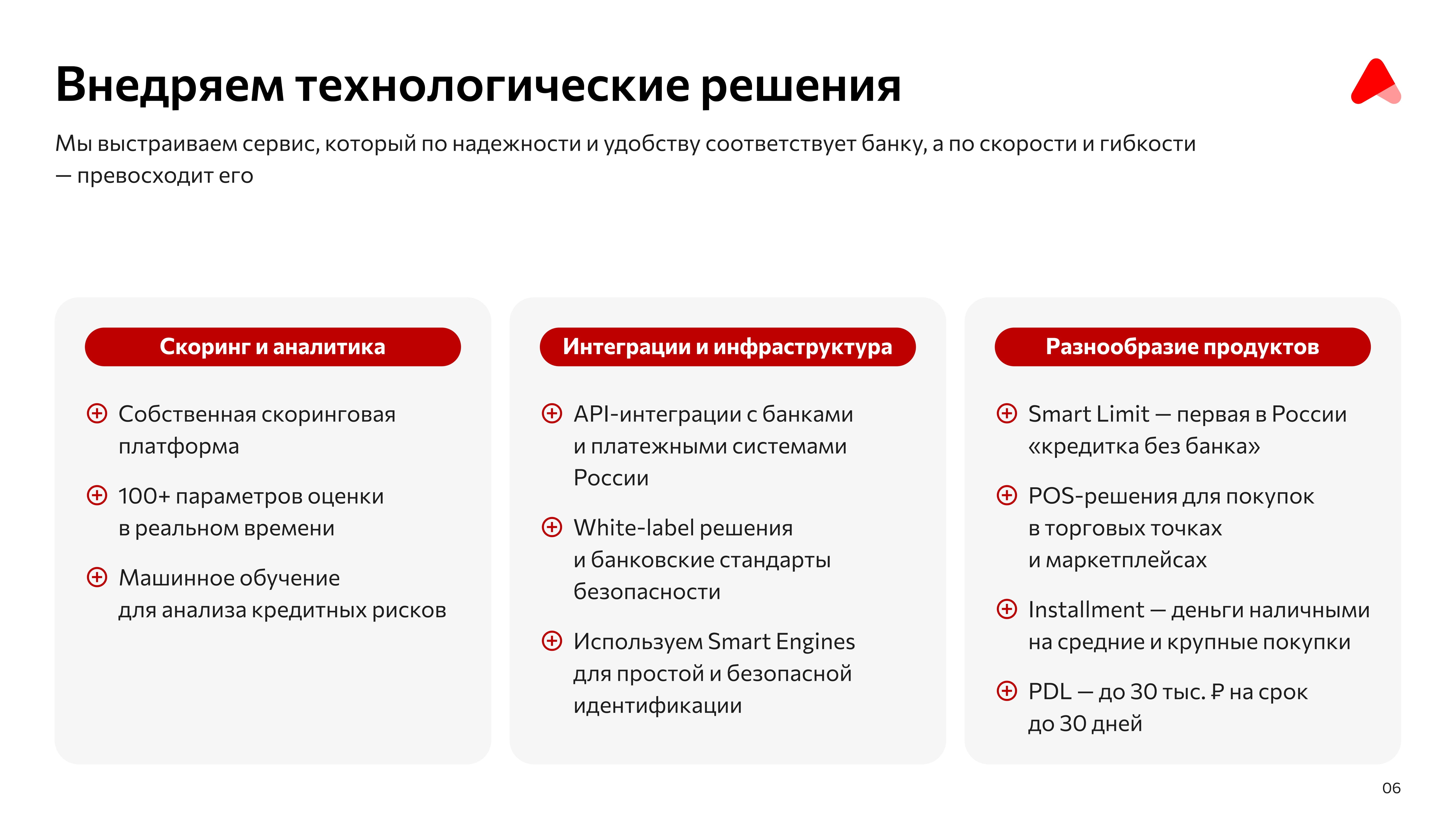 - Запущены инновационные продукты, например, Smart Limit— первая в России «кредитка без банка».