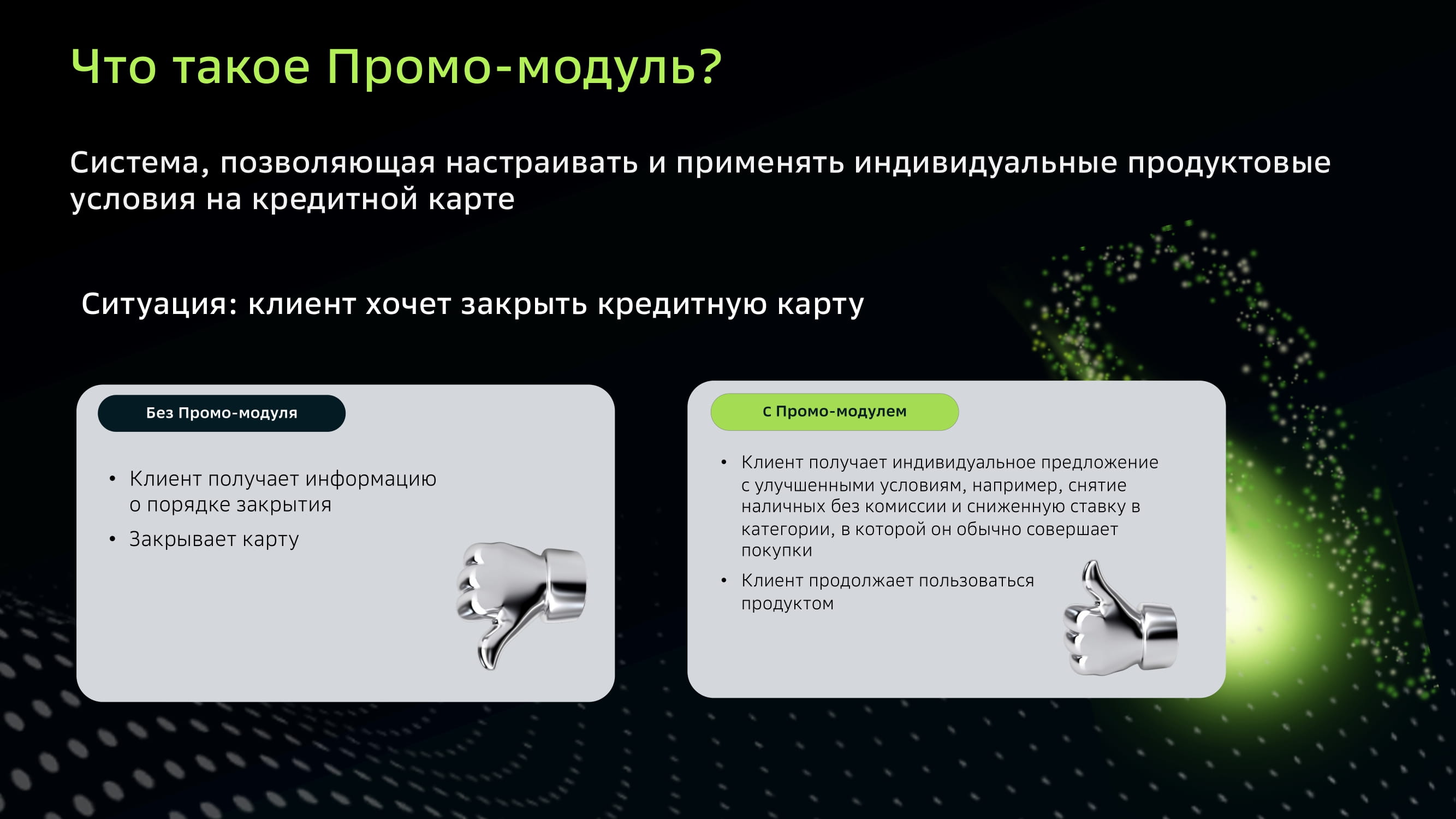 1+ Промо-модуль. Cистема индивидуальных предложений по кредитным картам, позволяющая предоставлять индивидуальные условия и тарифы клиентам. Тэги:#itрешение25, #rfa2025 Поделиться Проголосуйте!10 Предыдущий постСервис «Моя цена»Следующий постпрорывгода25 Добавить комментарий Отменить ответДля отправки комментария вам необходимо авторизоваться.Войти через соцсеть: