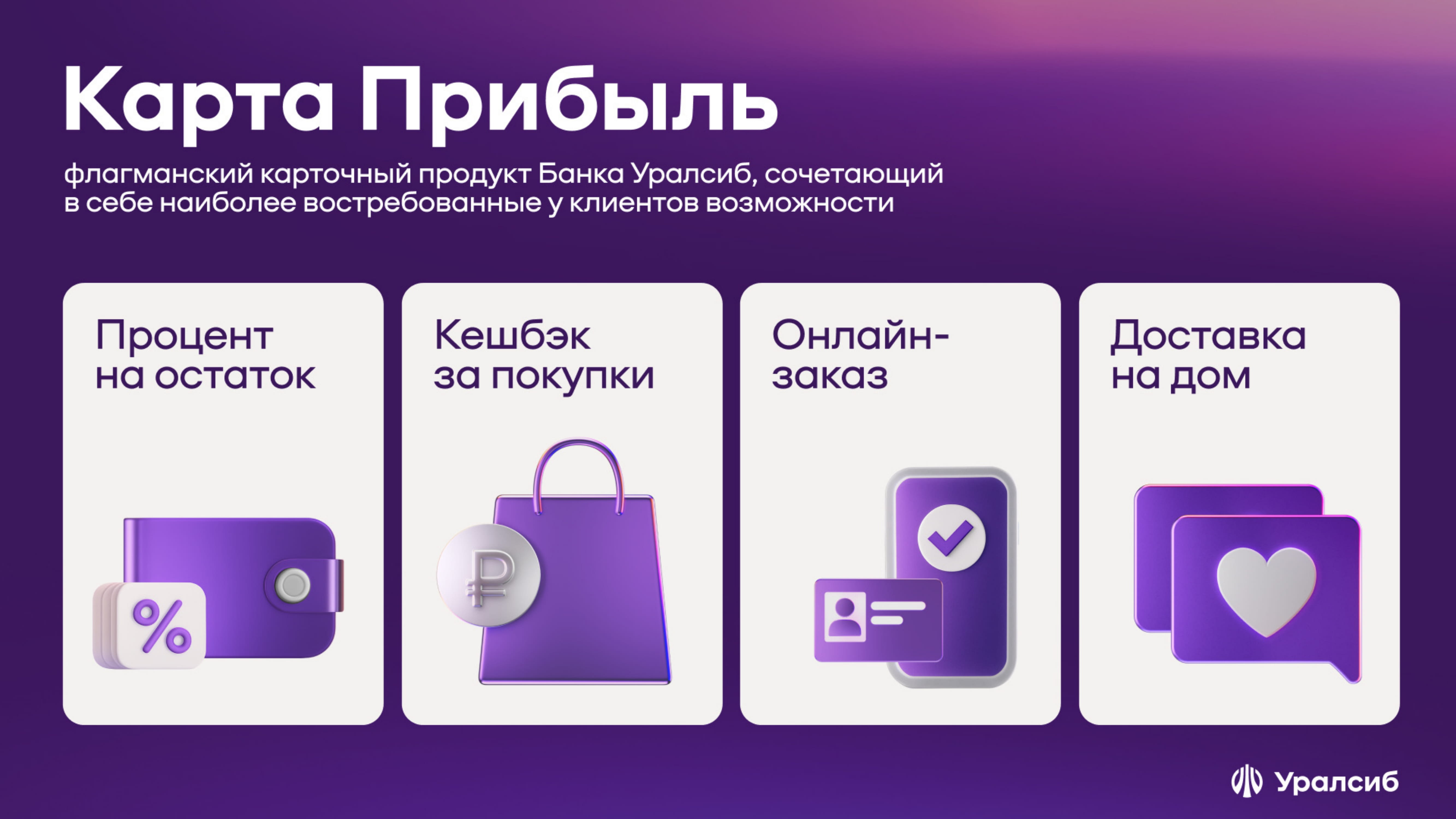 «Прибыль» – дебетовая карта Банка Уралсиб, которая делает каждый рубль ценнее. Она сочетает доход на остаток, щедрый кешбэк за покупки и удобное оформление онлайн с доставкой на дом. Все, что нужно для ежедневной выгоды – в одной карте.