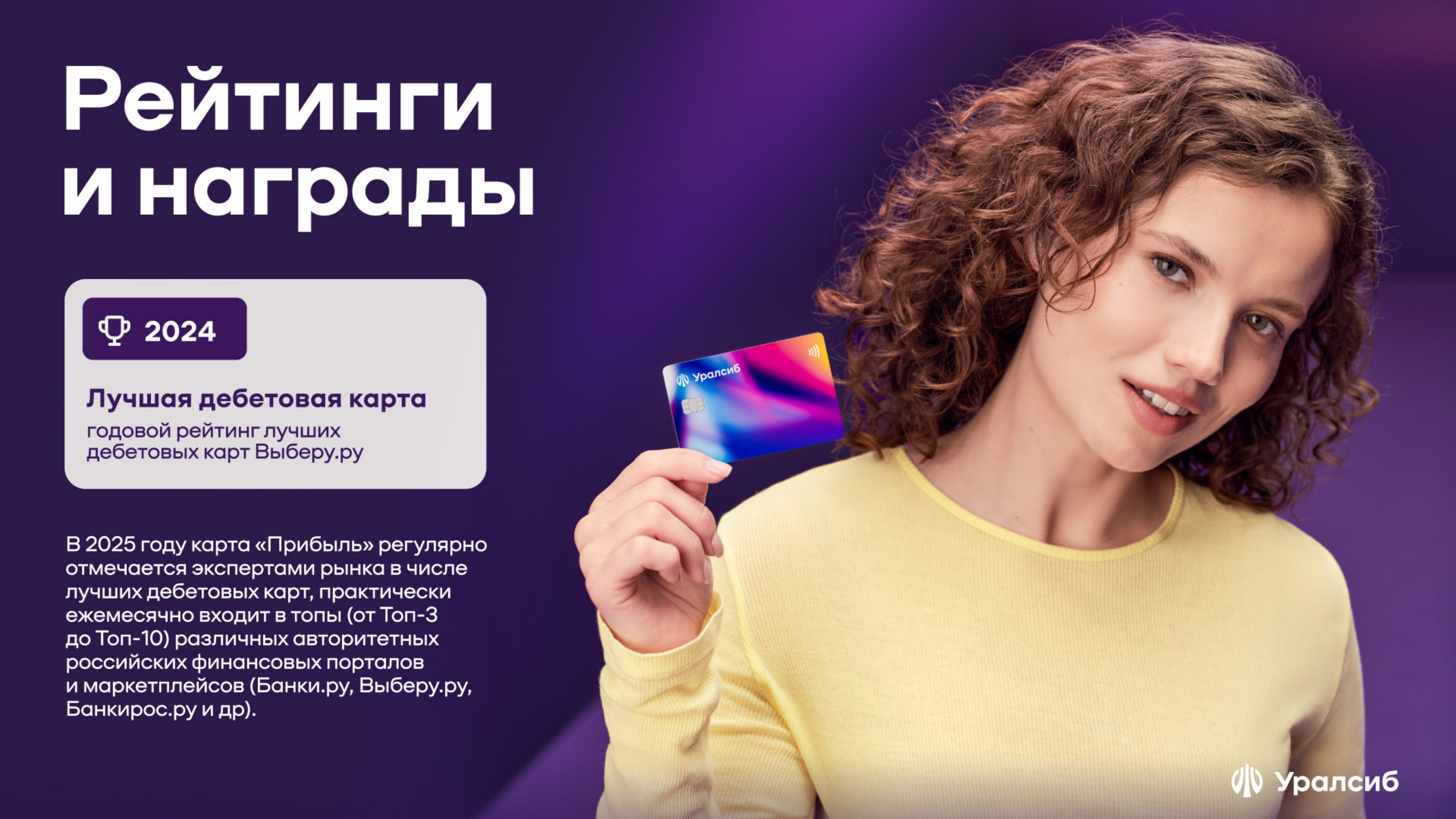 Карта «Прибыль» стабильно подтверждает статус одной из лучших дебетовых карт на рынке. В 2024 году она была признана «Лучшей дебетовой картой года» и возглавила итоговый рейтинг портала Выберу.ру. В 2025 году «Прибыль» неоднократно входила в ТОП-3 и ТОП-10 лучших дебетовых карт по версиям ведущих финансовых порталов и маркетплейсов – Банки.ру, Выберу.ру, Банкирос.ру и др.